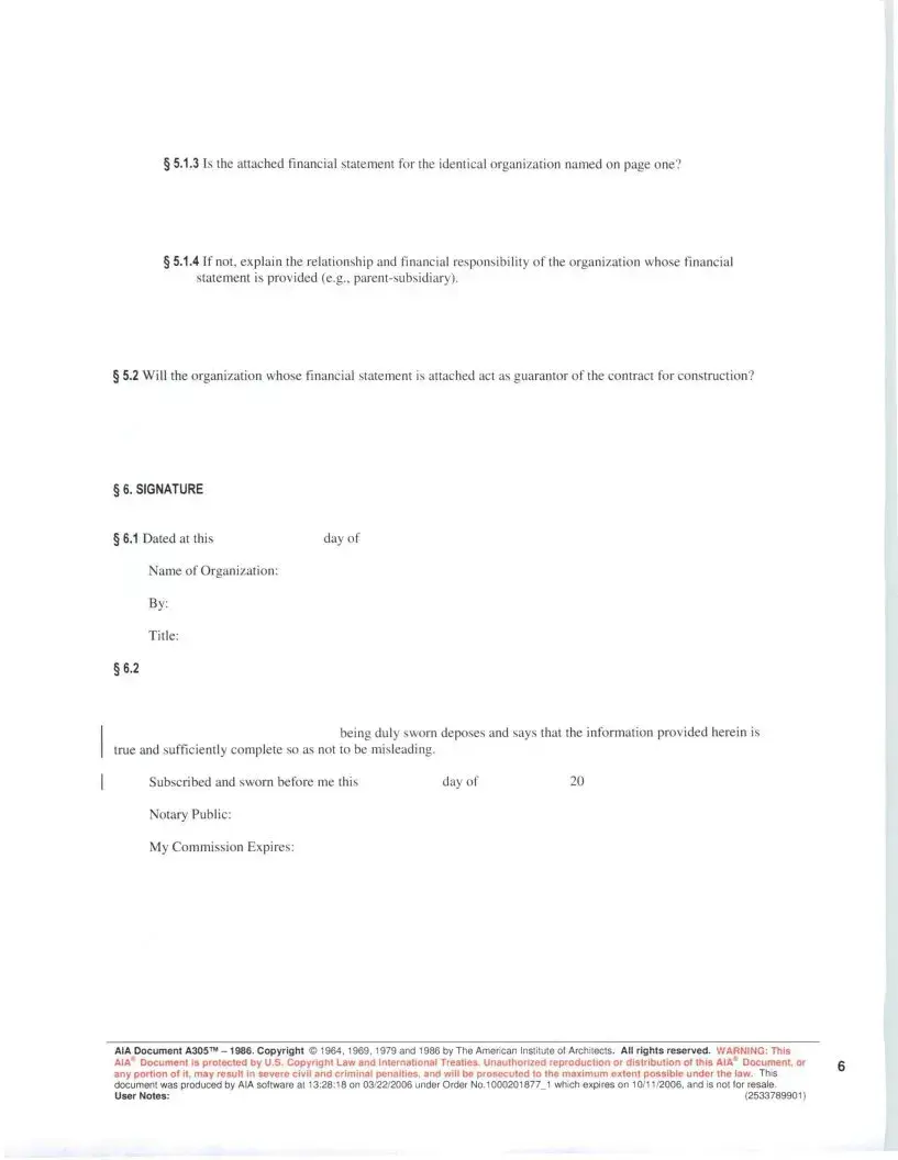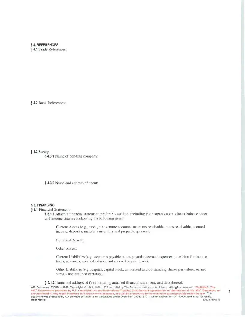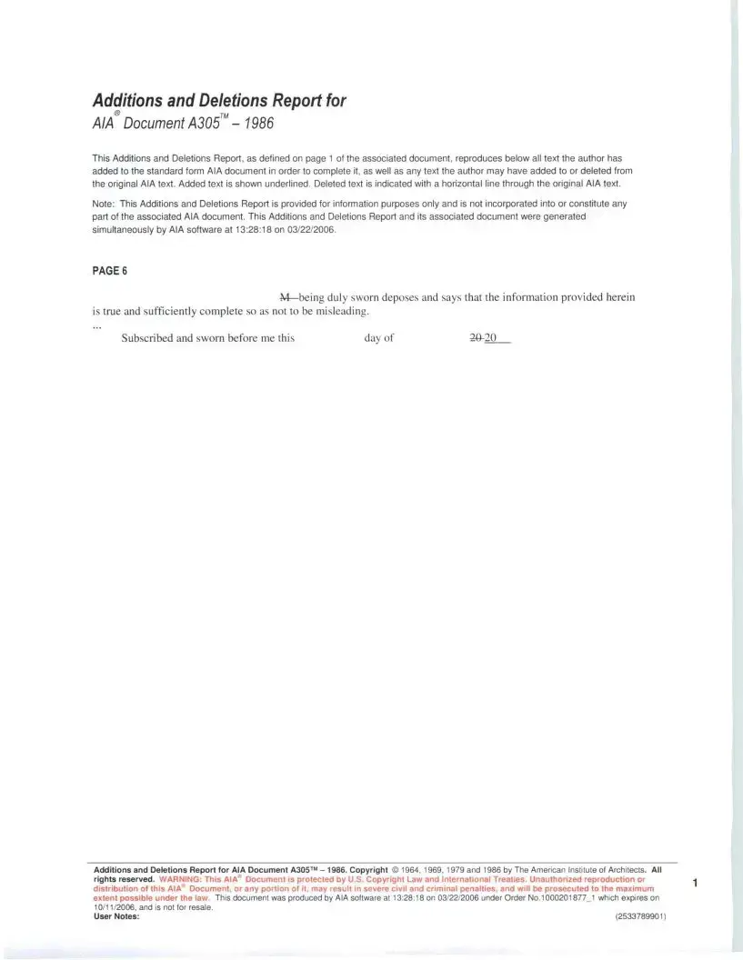 AIA Document A305™ -1986. Copyright© 1964, 1969, 1979 and 1986 by The American Institute of Architects. All rights reserved. WARNING: This