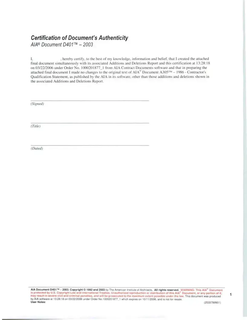 document was produced by AIA software at 13:28:18 on 03/22/2006 under Order No.1000201877_1 which expires on 10/11/2006, and is not for resale.