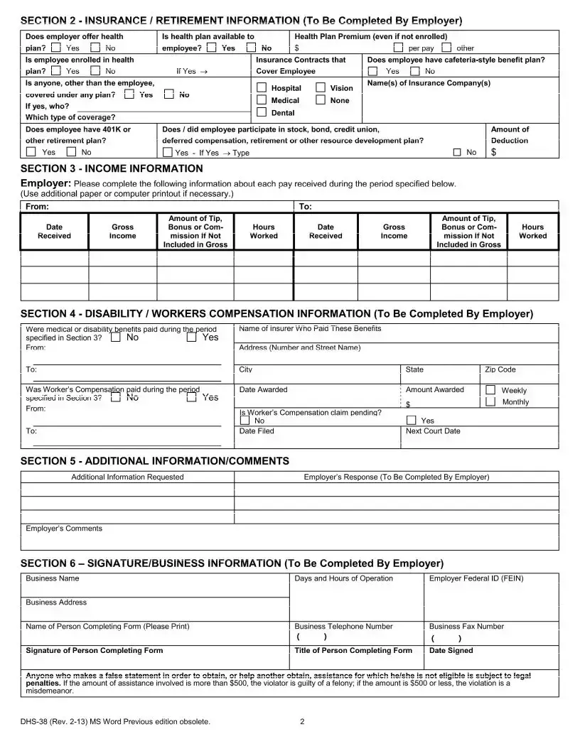 The DHS 38 form is a verification of employment document required by the Michigan Department of Human Services. It collects essential information about an employee's work status, income, and benefits. This form is crucial for the department's inquiries or investigations related to assistance programs.