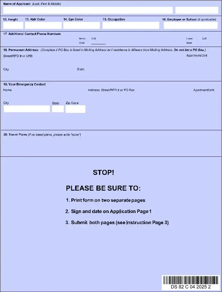 • Eligibility: The DS-82 form is intended for individuals who meet specific criteria, such as being an adult whose passport is undamaged and can be submitted with the application.