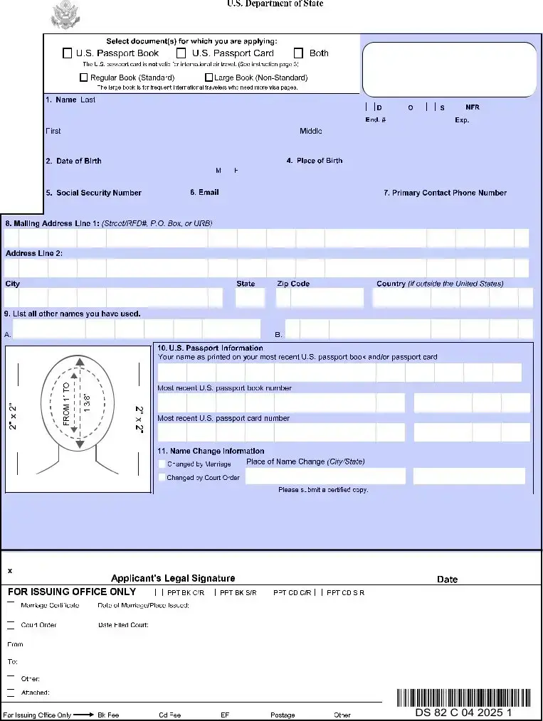 Another document comparable to the DS-82 is the DS-5504 application for a passport name change. Like the DS-82, this form is used for renewing a passport but specifically addresses changes in personal information. Both forms require documentation that supports the requested changes, such as marriage certificates or court orders, ensuring that the applicant’s identity is accurately represented in the passport.