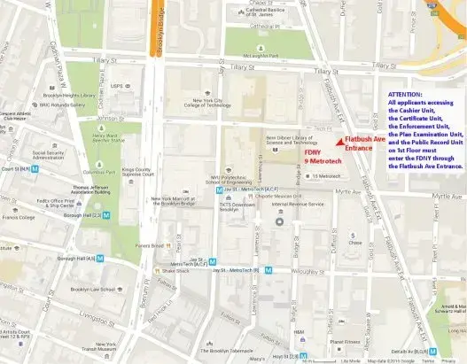 Exam site: FDNY Headquarters, 9 MetroTech Center, Brooklyn, NY. Enter through the Flatbush Avenue entrance (between Myrtle Avenue and Tech Place).