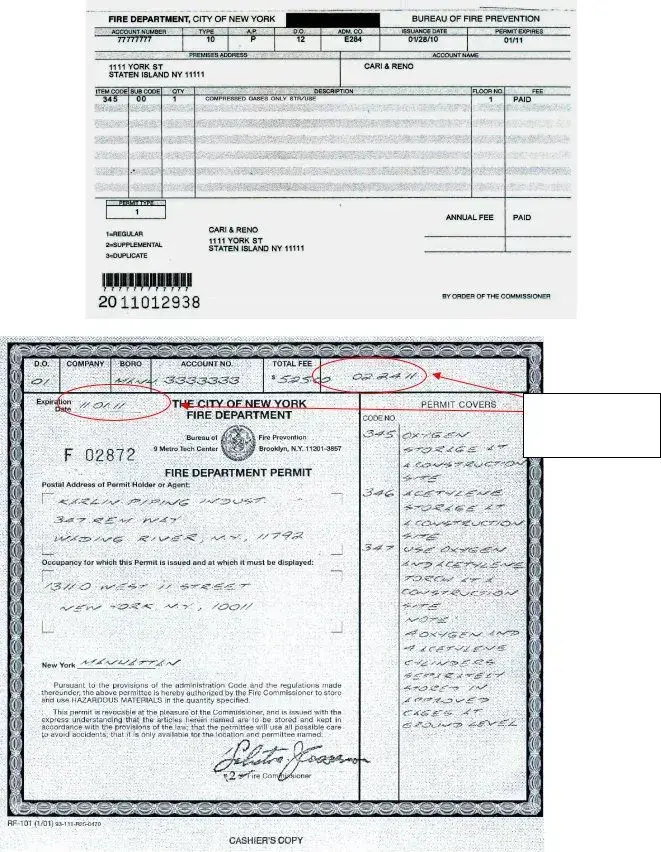 Example of a permanent FDNY permit