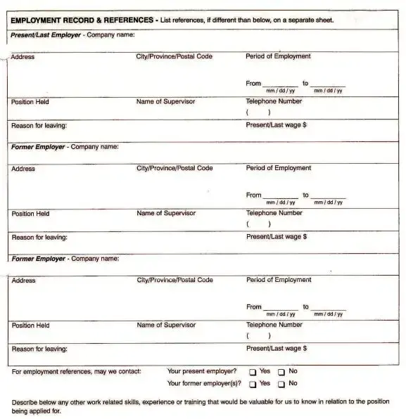 For the employment section, list the names, addresses, and phone numbers of your previous employers. Include your supervisor's name, dates of employment, salary, and the reason for leaving each job. It is advisable to list your most recent job first.