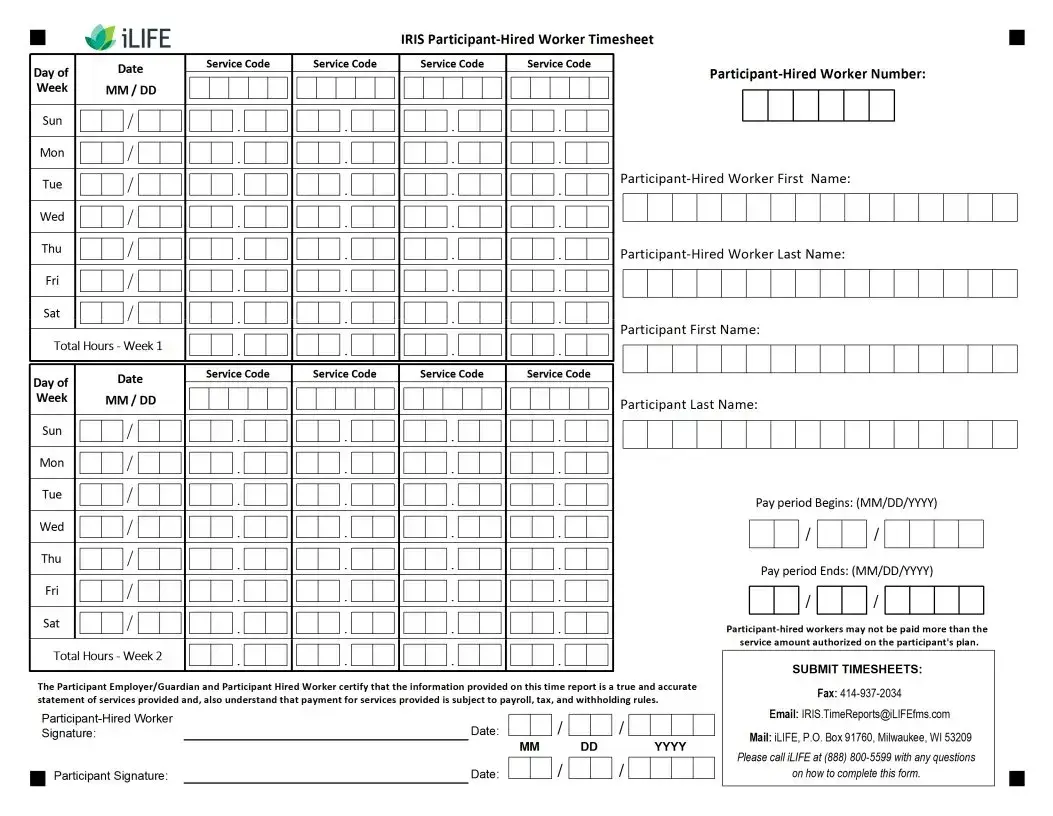 The Iris Worker Timesheet form is designed to document the hours worked by caregivers or service providers. It serves as an official record for the services rendered during a specific pay period. By accurately filling out this form, workers ensure they receive timely and correct payment for their services.