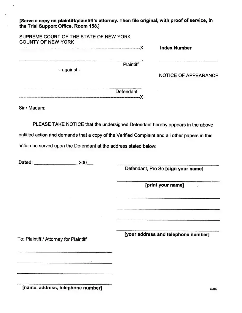 The Notice of Appearance is a crucial document in legal proceedings, similar to the Response to a Summons form. When a defendant receives a summons, filing a Notice of Appearance informs the court and the plaintiff that the defendant intends to participate in the case. This document typically includes the name of the defendant's attorney or states that the defendant will represent themselves. By submitting this notice, the defendant avoids defaulting on the case, as it shows their intention to oppose the lawsuit actively. In situations where a summons lacks specific details about the plaintiff's claims, the Notice of Appearance may also include a demand for a complaint, compelling the plaintiff to provide further information within a specified timeframe.