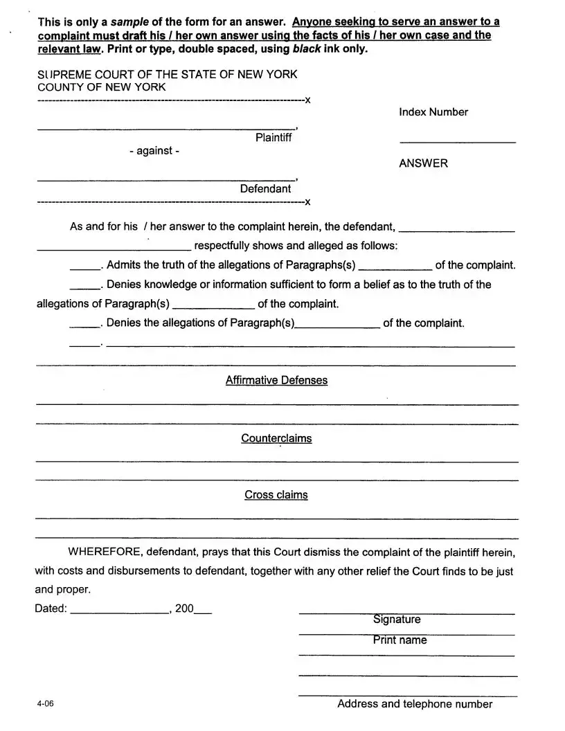 The Answer is another document closely related to the Response to a Summons. This form serves as the defendant's formal reply to the allegations made in the plaintiff's complaint. The Answer must address each claim presented, either admitting, denying, or stating a lack of sufficient knowledge regarding the allegations. It is essential for the defendant to respond to all points; otherwise, the court may consider unaddressed claims as admitted. Additionally, the Answer can include affirmative defenses, which are legal arguments that, if proven, can negate the plaintiff's claims. Failing to include certain defenses in the Answer may result in their forfeiture, making this document a critical aspect of the defendant's legal strategy.