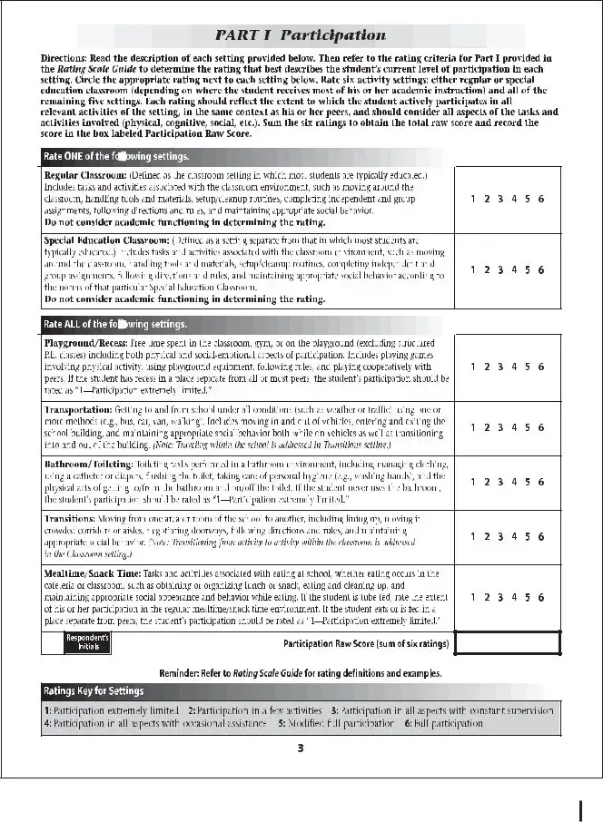 The School Function Assessment (SFA) form is a tool designed to evaluate a student's performance in school settings. It focuses on how well students participate in various school-related activities and routines. The assessment helps educators and support staff understand the functional abilities of students, especially those with disabilities, and guides the development of appropriate interventions and support plans.